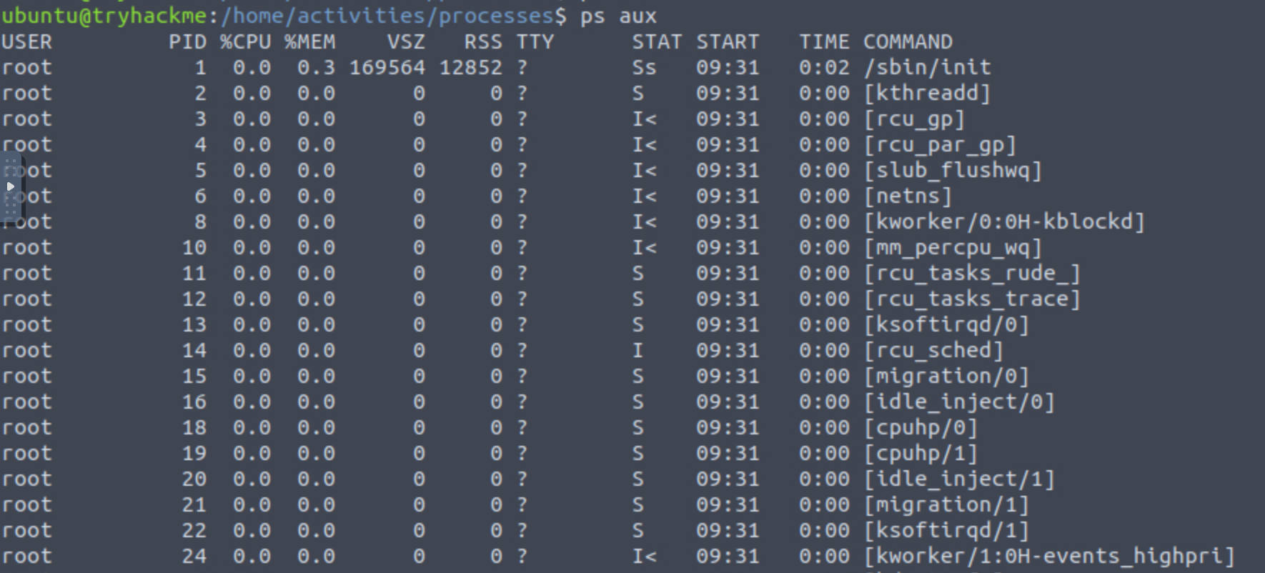 La sortie de cette commande nous donne ces informations : Shows ps aux output