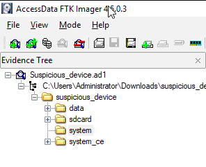Nous avons un fichier .ad1, nous l’importons dans FTK Imager.